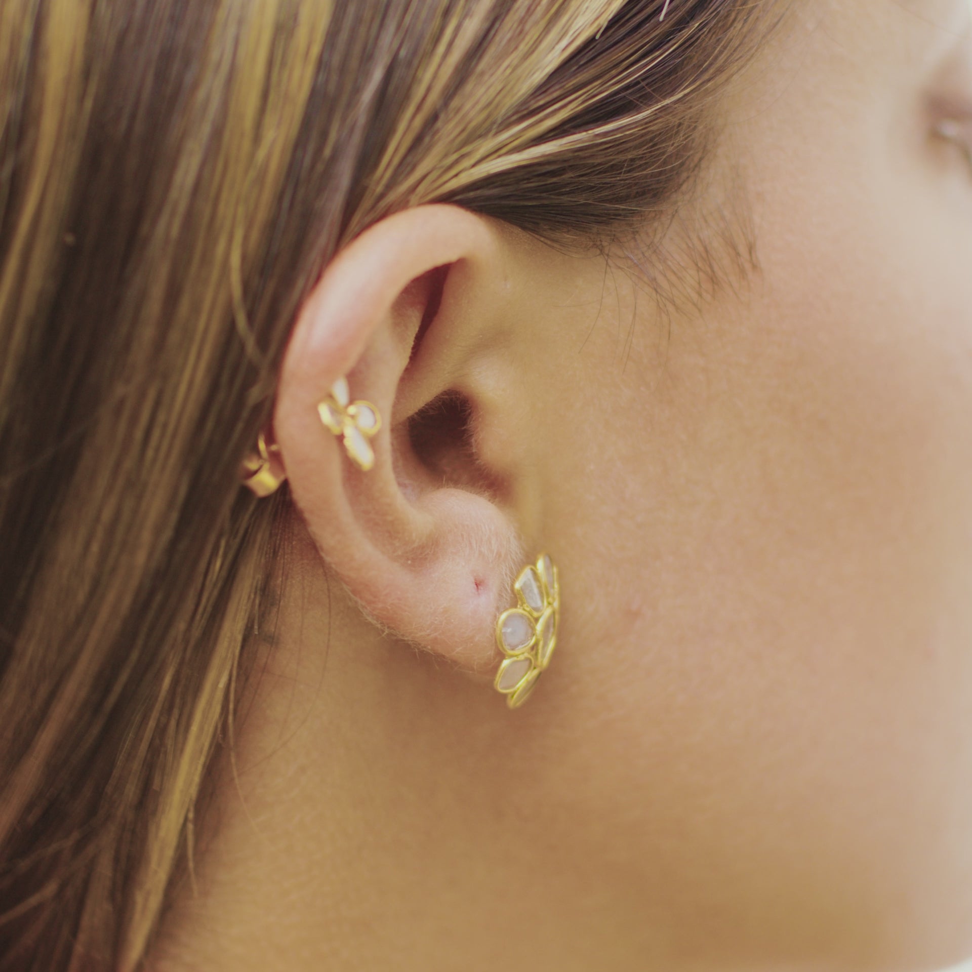 Diaphanous Diamonds Petit Floral Studs featuring finely shaved diamonds in shimmering petals of golden ethereal luminosity. Let the light shine through…